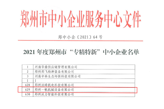 4、2021年8月,被認(rèn)定為“鄭州市專(zhuān)精特新企業(yè)”。