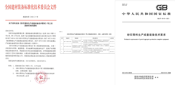 9、鄭州一帆作為主起草單位參與的《砂石骨料生產(chǎn)成套裝備技術(shù)要求》國(guó)家標(biāo)準(zhǔn)即將頒布實(shí)施。