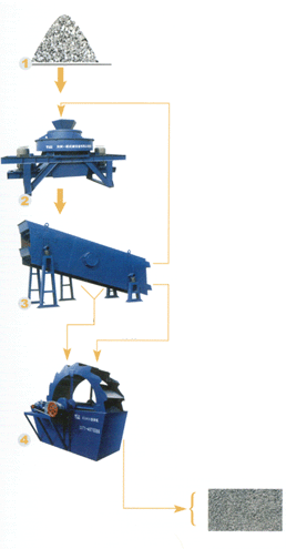 Regarding of detail condition, two kinds of techniques are usually adopted in producing manufactured sand, dry way and wet way. Both methods can produce high quality manufactured sand as concrete aggregate. Especially, the dry way can produce not only the manufactured sand used in SMA road surface, but also the powder used in asphalt concrete. |