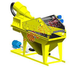 2. Working principle: The compound of sand and water is transported to cyclone, the sand that centrifugal classification concentrate provided to the vibrating screen by the heavy grit, sand and water are effectively separate after vibrating screen dehydration. Through Recycling Box, fine sand and mud and so on returned again to the pool, then are exhausted from the exit when the liquid surface of pool is too high. The material weight concentration recovered by the vibrating screen is 70%- 85%. Adjusting fineness module may come true by changing pulp concentration, adjusting the flooding water yield, changing the grit mouth, then fulfilling its three kinds function-washing, dehydration and screening.